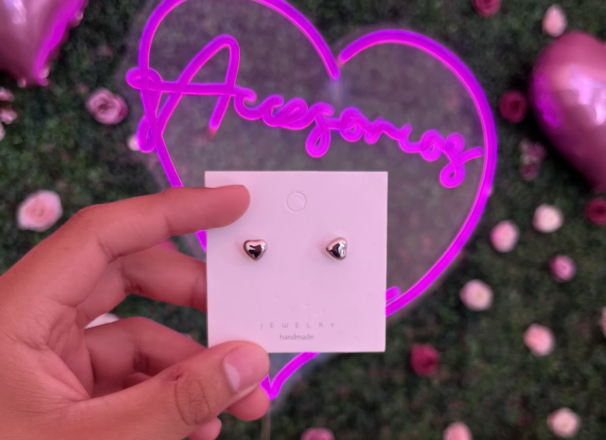 Aretes de acero inoxidable en forma de corazon tipo bomba