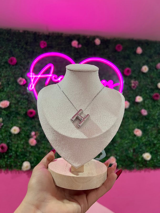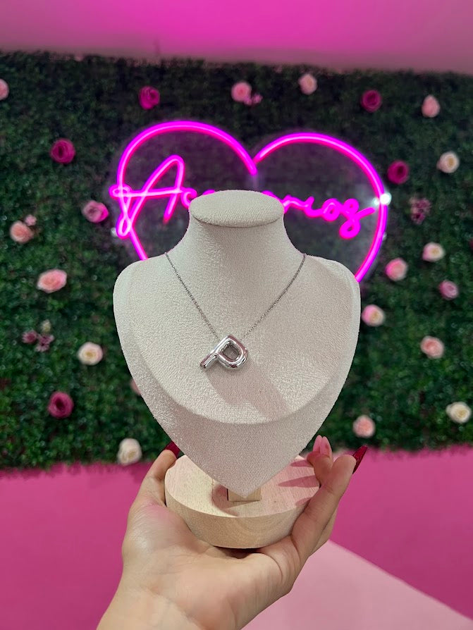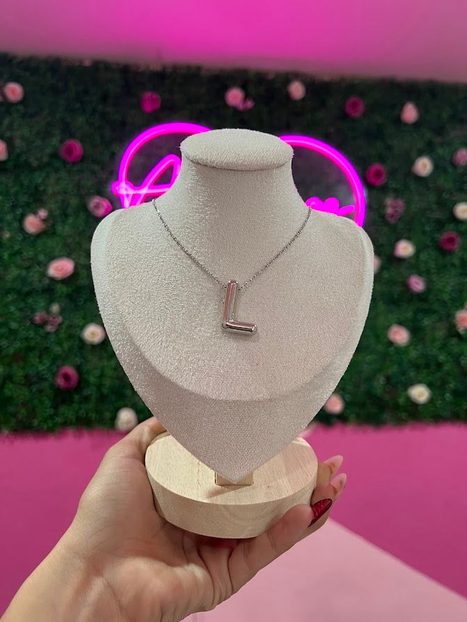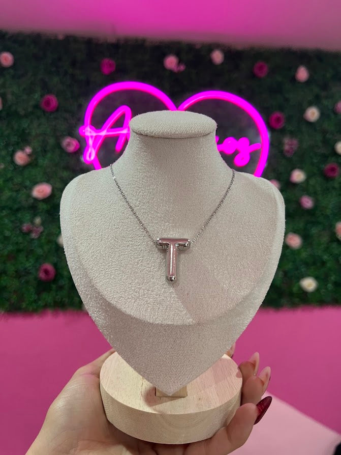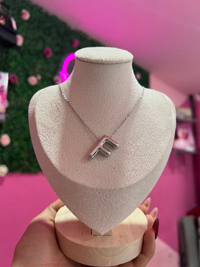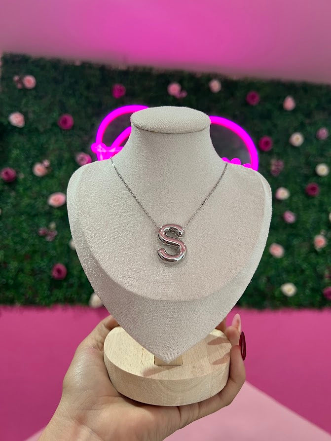 Cadena de acero inoxidable con dije de letra globo, distintas letras